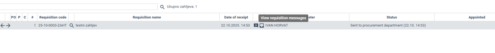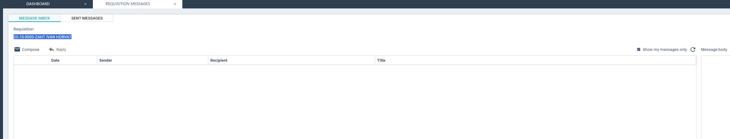 Clicking on the Messages button opens an overview of the communication related to the selected requisition.