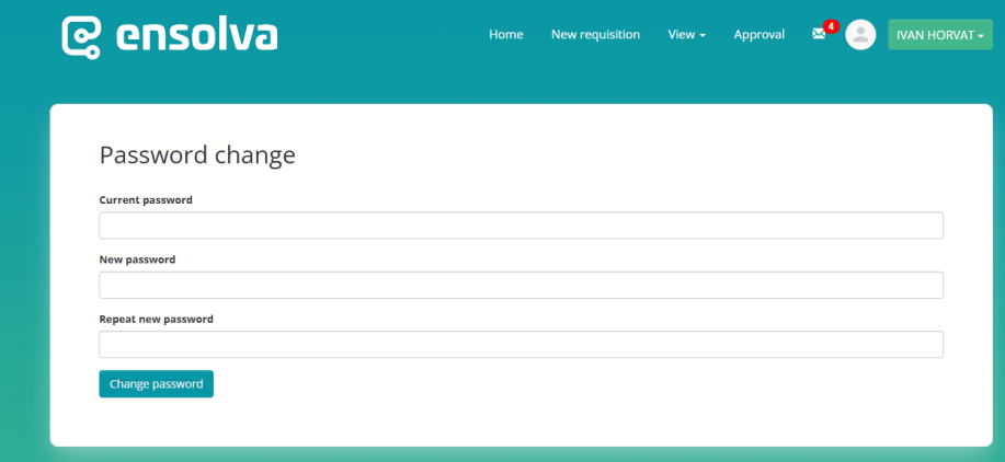 By clicking the “Change Password” button in the dropdown menu under your name, a field opens where you can change your current password by first entering the one you initially set.