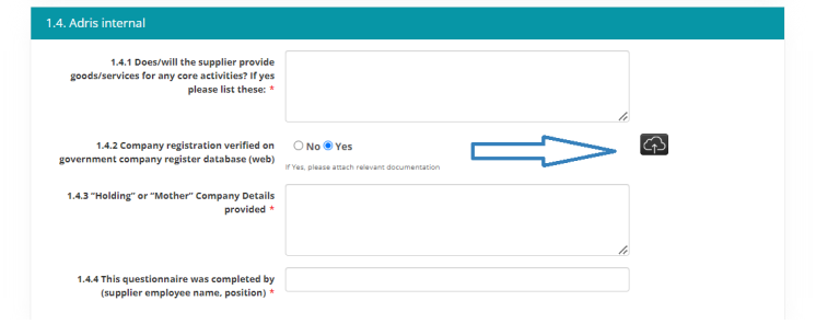 The corresponding document must be added by selecting the option "Yes" as the answer. Use the right-hand icon
