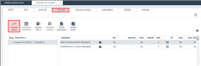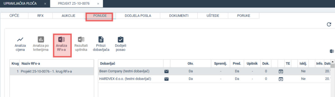 - na tabu Pregled ponuda odabrati Analiza Rfx-a