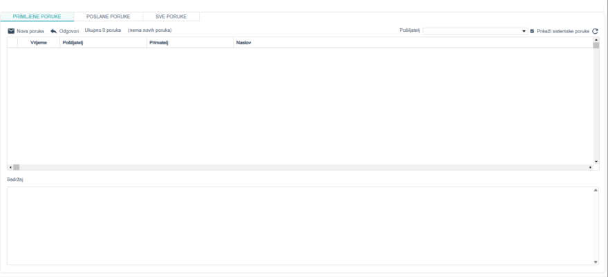 Nakon odabira poruke iz liste, u donjem okviru prikazuje se sadržaj poruke.