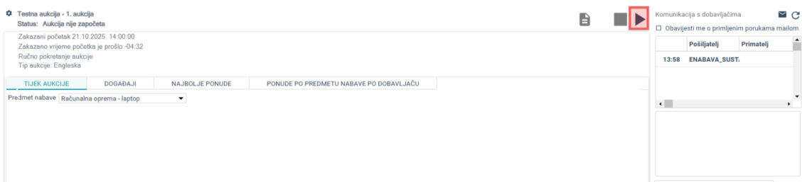 Kako bi pokrenuli aukciju potrebno je kliknuti na gumb Pokreni.