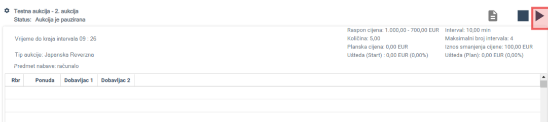 Kako bi pokrenuli aukciju potrebno je kliknuti na gumb Pokreni.