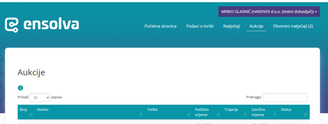 Dobavljači licitiraju svoju ponudu u skladu sa zadanim parametrima.